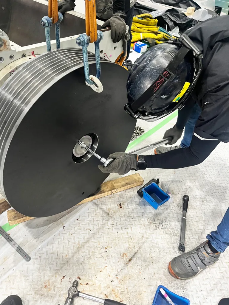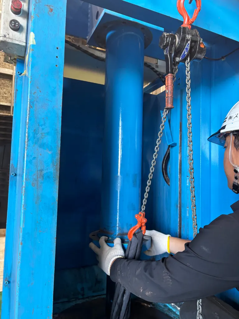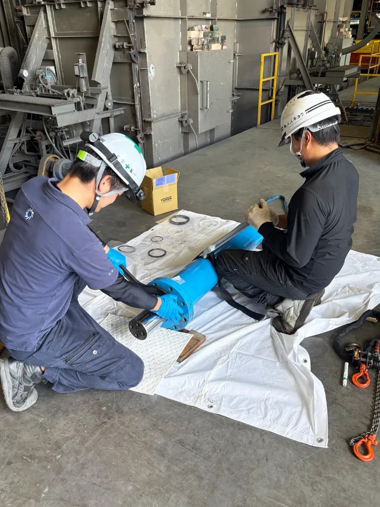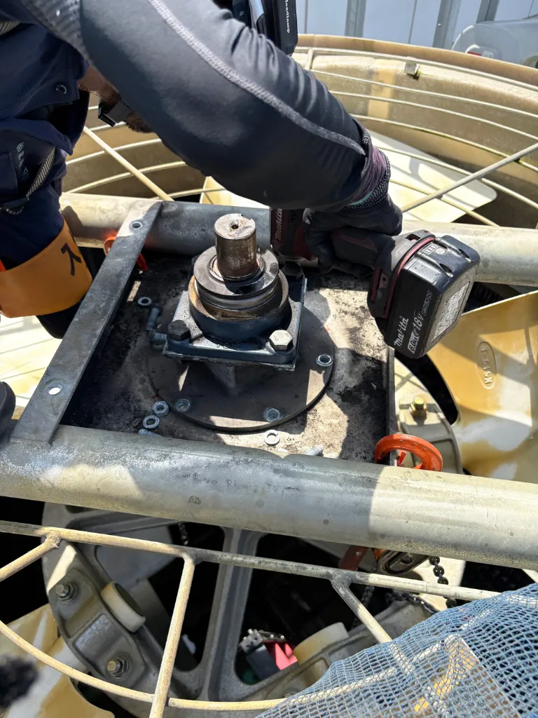 施工事例 施工事例 事例①排気ファンのベアリング交換工事 事例②丸形冷却塔モーター交換工事 事例②の中身、ファンは再利用し、モーターは新しいものに交換しました。 事例③油圧シリンダーの取り外し整備 事例③の中身、油圧シリンダー分解している 事例④冷却塔の軸受けユニット交換 事例⑤エアハンドリングユニットモーター整備 ベアリングの交換 事例⑥エアハンドリングユニット 軸受け交換 事例⑦ロール交換工事 事例⑦の中身、ロールの取り付け、ベアリングの取り付け 事例⑧粉砕機のプーリー交換工事